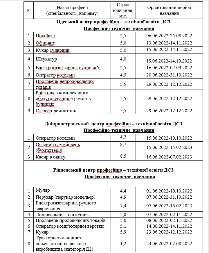 Донецький обласний центр зайнятості інформує про орієнтовний графік на червень 2022 року, за яким планується навчання безробітних у центрах професійно-технічної освіти Державної служби зайнятості.